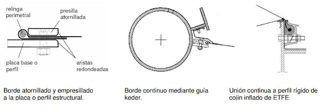 particular de este modo de unión es el de los cojines hinchados de ENFE, como los de la Allianz Arena de Munich.