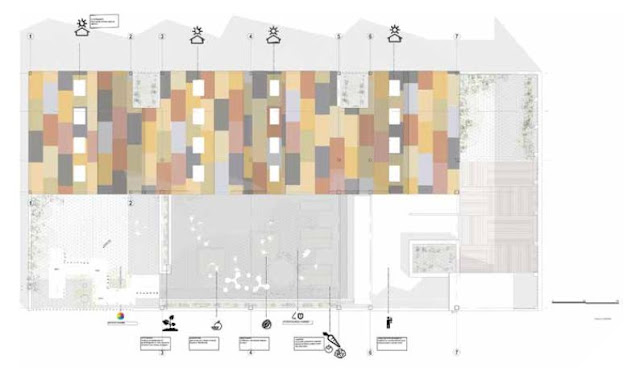 De esta manera, el patio se convierte en el eje principal alrededor del cual se interrelacionan los distintos programas. Las conexiones entre los edificios se definen a través de una serie de propuestas urbanas, como ser el ensanchamiento de las calles que definen la manzana, la nivelación de la calle y la vereda, reconociendo al cordón como elemento de borde.