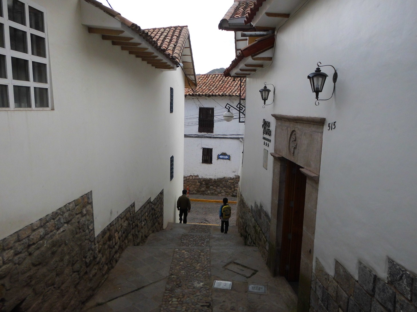 Cuesta a continuación de la vía en plano, escalones por tramos, a los costados de la vía se tienen lajas de piedra en rombo, mientras que al medio está el canto rodado, dada la diferencia de niveles se puede contemplar desde aquí los techos con tejas.
