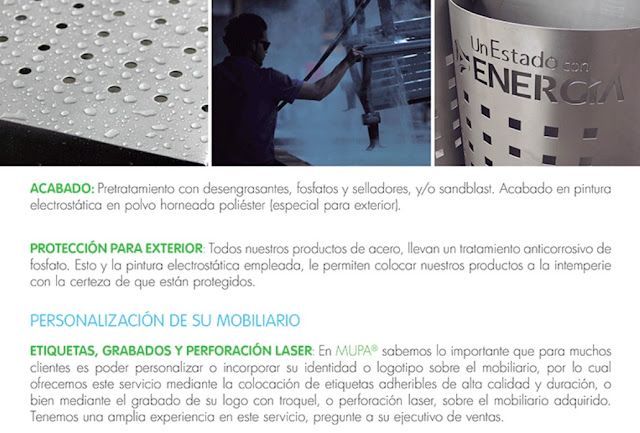 Botes Metálicos para Basura, Mesas Metálicas, Techumbres y Señalética, Mobiliario Urbano Infantil, Ejercitadores al Aire Libre, Piso Amortiguante, Bancas para Parque, Sombrillas de Lona, Aparcabicicletas, Paraderos de Autobús, MUPIS Luminosos, Circuitos Caninos, Juegos para Niños, Mobiliario Ecológico Sustentable, Ceniceros Metálicos, Bolardos Públicos, Jardineras, Circuitos Ejercitadores Públicos, Contenedores Plásticos para Basura y más. Metálicos, Inoxidables, Resistentes, Ecológicos y Sustentables